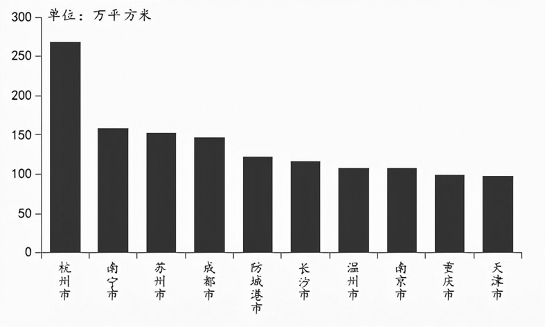報告顯示,一線城市占比有所下降,城市群中長三角熱度略有下降。從布局城市等級來看,50家代表房企2021年1-3月在二線城市和三四線城市的投資面積占比依舊基本持平,分別為48.2%和47.2%,但一線城市占比有小幅下降。從布局區域來看,企業依舊熱衷于在長三角拿地,占比為36.2%,但相較1-2月,該占比有所下降。粵港澳大灣區次之,占比為7.8%,長江中游和成渝城市群占比分別達7.0%和6.9%,比例變化不大。房企杭州拿地規模持續擴大,拿地城市區域較為分散。2021年1-3月,50家代表房企拿地面積TOP10城市中,杭州繼續以累計優勢占據首位。TOP10城市中,區域較為分散,除杭州、蘇州、溫州和南京為長三角城市外,其余6城市涉及成渝、中西部、京津冀等多個城市群。