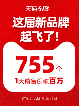 2021年天貓618開門紅期間,僅6月1日當天,就有755個新品牌首日成交額超過1百萬元。有商家慨嘆:新品牌的黃金時代來了,天貓是品牌創業第一平臺。