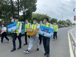除了服務抗疫一線的志愿者,另一支志愿者隊伍走進水晶社區村委會及晶橋鎮街道,發放綠地無舍山南項目團隊連夜定制的防疫包200余份,真正把抗疫工作做到實處。