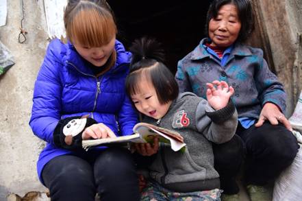 【圖說:“童伴媽媽”在陪鄉(xiāng)村留守兒童學(xué)習(xí)】
