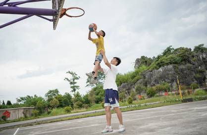【圖說:“大山里的籃球夢”公益項(xiàng)目,支教志愿者與鄉(xiāng)村孩子一起打籃球】