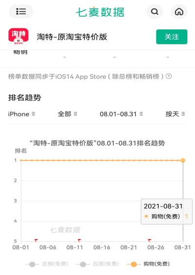 連續(xù)31天霸榜 淘特8月穩(wěn)坐蘋果App Store購物榜榜首