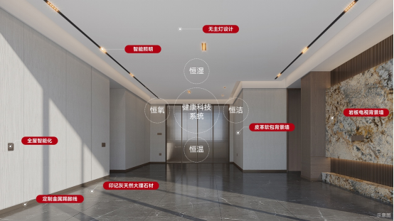 在內(nèi)里的打造中,翡麗鉑灣對(duì)于產(chǎn)品細(xì)微處的堅(jiān)持近乎做到了“挑剔”,尤其是在材質(zhì)選擇上,舍棄主燈照明慣用手法,改用筒燈、射燈或者燈帶等間接照明的懸浮式無(wú)主燈設(shè)計(jì);室內(nèi)嚴(yán)選印記灰天然大理石材代替?zhèn)鹘y(tǒng)瓷磚鋪地面,賦予天然大理石獨(dú)有的紋路質(zhì)感;廚房臺(tái)面、島臺(tái)臺(tái)面、玄關(guān)臺(tái)面全部嚴(yán)苛甄選黑倫金巖板,巖板擁有抗折、抗腐蝕、防污耐磨等物理性能,同時(shí)還兼有無(wú)毒無(wú)醛、食品級(jí)表面等特性,業(yè)主后期可以不用砧板,在臺(tái)面上直接切菜。