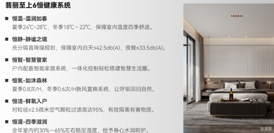翡麗鉑灣被國(guó)資振業(yè)、新城控股視為2021年TOP級(jí)圓夢(mèng)系標(biāo)桿立勢(shì)作品,可以說(shuō),兩大巨匠不惜成本的在打造翡麗鉑灣。打造六恒科技系統(tǒng)真·科技住宅。在“恒溫、恒靜、恒氧、恒潔、恒濕、恒智”的量化下,從溫度、濕度、空氣、聲音等多個(gè)方面關(guān)注人們的健康問(wèn)題,感知真正的智慧健康科技帶給居住的幸福體驗(yàn)。
