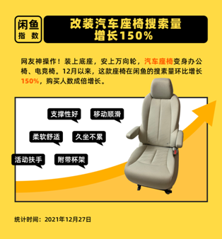 記者了解到,12月以來,這款座椅在閑魚的搜素量環比增長150%,購買人數也是成倍增長。