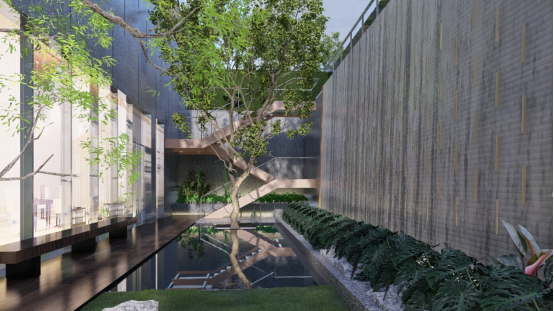 踱步向前,水景與植被的嵌套,打破了視覺(jué)上的生硬單一,景觀樹(shù)經(jīng)過(guò)層層挑選,以一種生命之勢(shì)喚醒建筑的協(xié)調(diào)均衡。