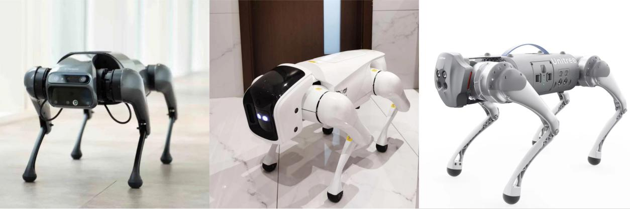 圖:左起小米鐵蛋、阿爾法機器狗、宇樹Go1