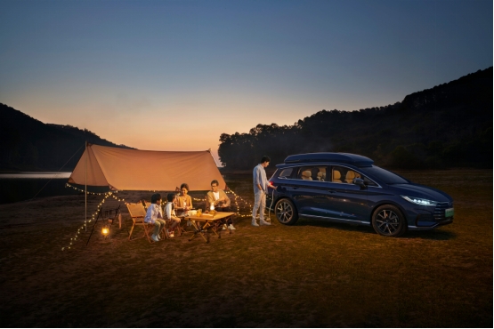 讓人驚喜的是,2022款宋MAX DM-i全系標配VTOL移動電站,最大放電功率達3.3kW,可穩定輸出220V交流電,戶外烹飪、唱K、露天電影輕松實現。在露營潮蔓延的當下,宋MAX DM-i變身“移動房車”,讓休旅生活更來電。
