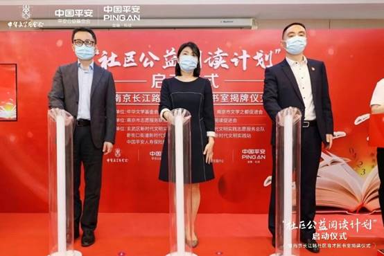 活動中,江蘇省作家協會黨組成員、書記處書記、副主席魯敏、南京市委宣傳部副部長、市文明辦主任彭振剛、中國平安人壽保險股份有限公司江蘇分公司副總經理朱從文,共同啟動了“社區公益閱讀計劃”項目。
