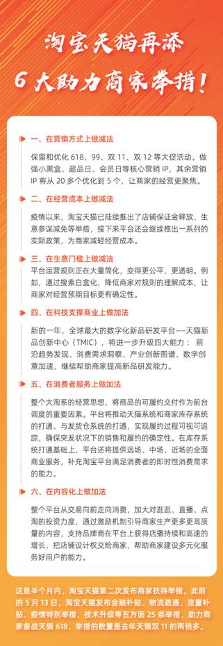 5月20日,淘寶天貓融合半年以來,首次對外披露核心戰略:圍繞10億用戶,從交易走向消費,做好、做深國內消費市場。未來三年,淘寶天貓將培育100個用戶規模過億的超級品類。此外,繼天貓618發布25條商家政策后,時隔7天,淘寶再次增加6項舉措,營銷方式、經營成本、生意門檻做減法,科技支撐商業、消費者服務、內容化做加法。“幫助商家穩大盤、有增長,是我今年最重要的事情。”阿里國內數字商業板塊總裁戴珊表示。