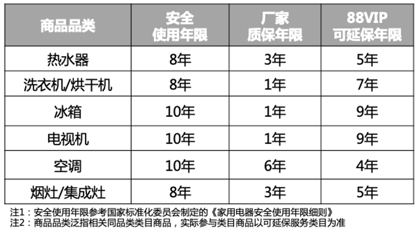 以往,大家電不同品類的商品,有不同的安全使用年限,廠家也會提供不同年限的質保。例如冰箱,法定安全年限是10年,廠家質保是1年。消費者要想延長保修期限,需購買延保服務。這次618,天貓直接把88VIP用戶的冰箱保修期限免費延長到了10年。