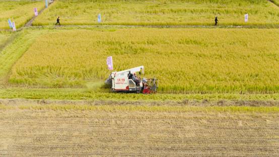 從9月中旬開始,黑龍江省慶安縣萬畝稻田迎來了豐收忙,稻浪滾滾,淺黃、金黃縱橫交織。