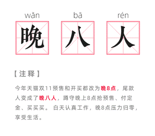 除了折扣力度大,今年雙11以消費者體驗為中心,“變”與“不變”都以消費者體驗為標尺。比如,今年在時間節奏上將「不熬夜」進行到底:不僅預售放在晚8點,兩波正式開買的時間也分別為:10月31日晚8點和11月10日晚8點。網友們紛紛評論:尾款人都變成了晚八人。