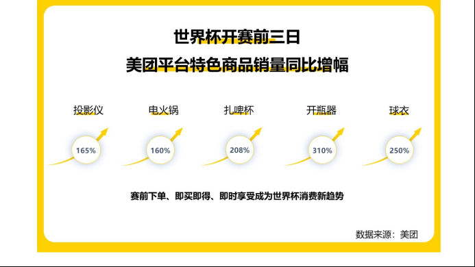 ▲世界杯開賽前三日,美團(tuán)平臺(tái)投影儀、電火鍋等外賣銷量同比增長(zhǎng)超160%(網(wǎng)絡(luò)截圖)