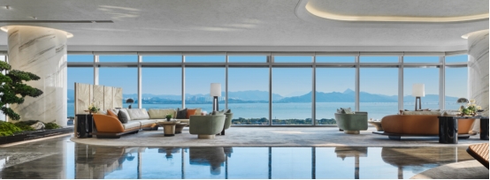 深圳龍光·錦繡公園壹號(hào)得天獨(dú)厚的區(qū)位優(yōu)勢,從邁入空間的瞬間便能得以瞥見遠(yuǎn)處的山海,一排明凈的落地玻璃,視野愈加遼遠(yuǎn),人與世界融為一體。中庭空間里,天花板及中間水景對(duì)應(yīng)透光頂,讓我們?cè)诔鞘懈∪A的洗禮后,進(jìn)入能夠令人頓悟沉浸此刻的空間,在環(huán)形天光與樹的營造中形成大自然的莊嚴(yán),得以獲取進(jìn)入心靈的寧靜。