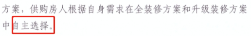 據(jù)悉,王先生反映的裝修包是樓盤在全裝修交付基礎上提供的升級裝修方案,根據(jù)相關規(guī)定,買房人可自愿選擇,并不是強制性的。