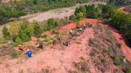 今年3月,謝能斌組織了十幾個同村村民上山種植油茶樹,每畝種65棵,連續種半個月,才能將承包的400余畝山地種滿。