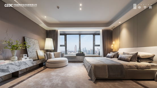 在樣板間的設計中,項目邀請豪宅設計大師唐忠漢先生執筆,量身定制高端圈層人居。從居住者角度出發,通過科學動線劃分,實現家政區域與臥室、客餐廳區域彼此獨立又互不影響。南北雙陽臺布局,其中南向轉角陽臺的設計,可帶來約270°全景落地窗的無邊界視野體驗!