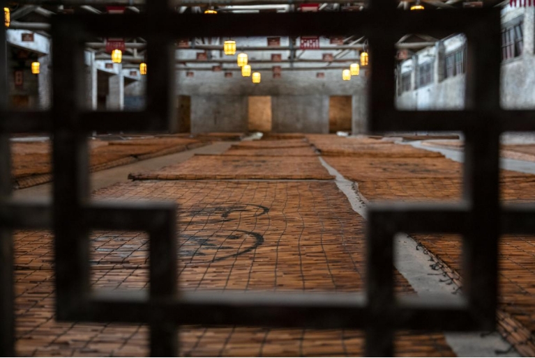 手工班釀造車間,工人正在出甄降溫,儲永志/攝