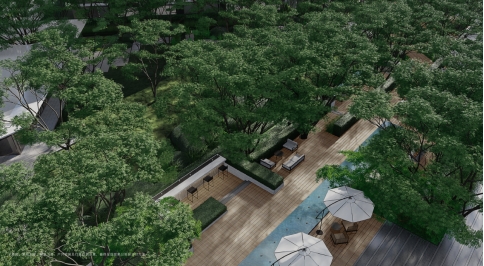 景觀方面依然延續(xù)一期的特色,充分利用地形設(shè)計出獨具特色的地高差自然美景:臺地落水、瞭望平臺以及風(fēng)景落座空間,拾級而上,心境輕松愉悅。從空中鳥瞰,朗拾二期就好像是一座生長在綠意環(huán)抱之中的自然島嶼。