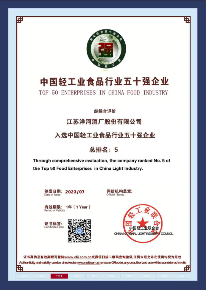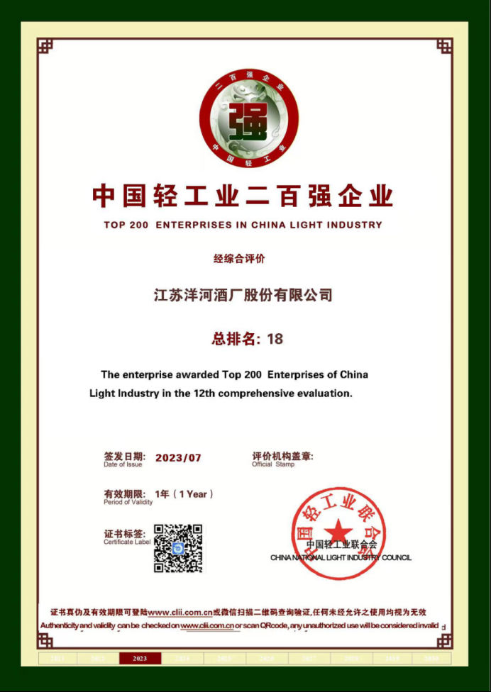 “中國輕工業二百強企業”在行業中具有極高權威性和廣泛影響力,是衡量中國輕工業企業發展活力的重要標準。洋河股份憑借持續的科技創新、研發高投入以及高端專業人才引入,再一次獲得中國輕工聯的高度認可。