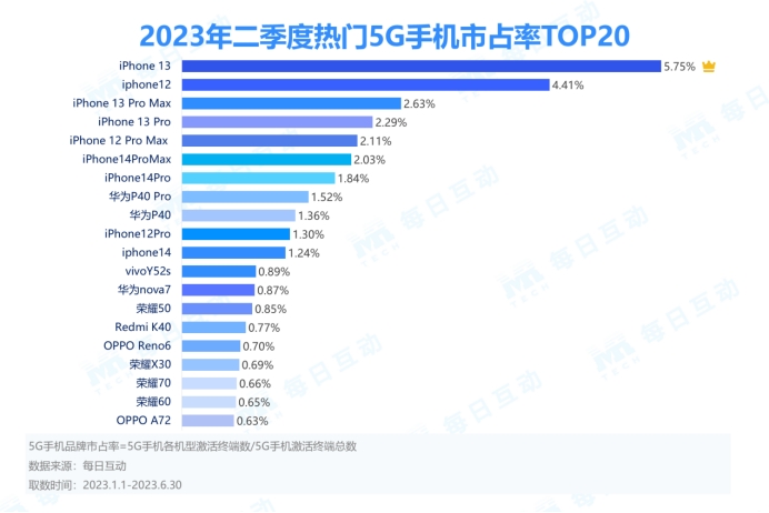 每日互動(dòng)大數(shù)據(jù):國(guó)內(nèi)5G手機(jī)市占率逼近50%,增長(zhǎng)穩(wěn)定