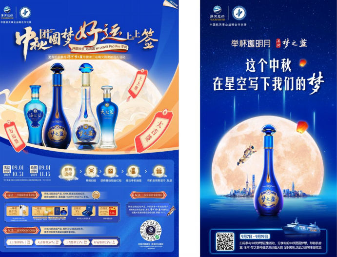 線上,洋河“中秋團圓夢 好運上上簽”活動中,各式獎品既接地氣又實用;“這個中秋,在星空寫下我們的夢”夢想征集活動,攜手“洋河·夢之藍號”捷龍三運載火箭發射郵輪觀禮之旅重磅來襲……通過數字化中秋回饋活動,“洋河”與消費者之間形成一個連通器,連接千家萬戶,與消費者共話團圓夢想。