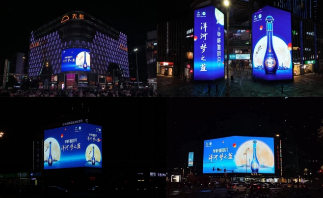 線上功夫做足,洋河還在線下營造出濃厚的過節氛圍,在全國各大城市的核心商圈、網紅地標建筑,“洋河·夢之藍”用“舉杯邀明月”中秋主題海報為紐帶,給消費者帶來直擊心靈的鼓舞和慰藉,用“高端”“高品質”“高品位”的形象價值為中秋增添節日氛圍,在與消費者的多維度互動中,拉滿消費者品質體驗。