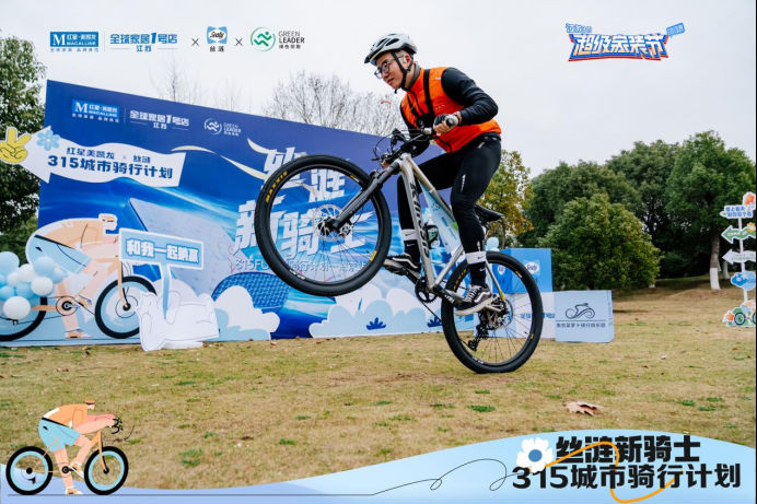 在騎行開始前也設置了多個互動熱身環節,例如,妙趣橫生的躺贏簽方式、騎行特技展示等,讓大家在騎行之前增進對彼此的了解培養團隊精神。當然,活動的最終目的還是為倡導綠色出行,減少碳排放,呼吁大家關注環境保護,共同呵護我們的家園。