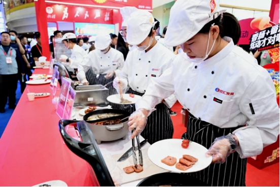 餐飲產(chǎn)品展區(qū)展示了紅燒獅子頭、藤椒豬蹄、黃燜排骨、梅菜扣肉等中華菜肴系列,香鹵牛肉、豬耳片、醬香捆肘、椒麻雞等醬鹵熟食,拌面、拌飯、煲仔飯、米線等方便速食,調(diào)料綜合展區(qū)展示了雞味鮮、豬骨高湯、回鍋肉調(diào)味醬、炸醬面拌醬等產(chǎn)品,是企業(yè)“進(jìn)家庭 上餐桌”產(chǎn)品戰(zhàn)略的成果。團(tuán)餐產(chǎn)品展區(qū)展示了米飯?zhí)撞?、面條套餐、蓋澆飯?zhí)撞偷绕奉愗S富、營養(yǎng)美味的各種營養(yǎng)餐系列,全力滿足學(xué)校、醫(yī)院、機(jī)關(guān)單位等消費(fèi)群體“安全、營養(yǎng)、豐富、便捷”的用餐需求。