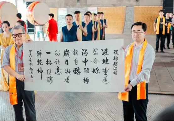 江蘇省文聯(lián)主席章劍華細(xì)品頭排酒后意猶未盡,靈感迸發(fā):“金樽玉液細(xì)品嘗,潤(rùn)口溫心聞暗香。”