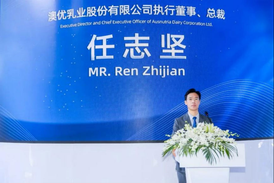 澳優(yōu)執(zhí)行董事、總裁任志堅為兩款新品發(fā)布發(fā)表致辭。