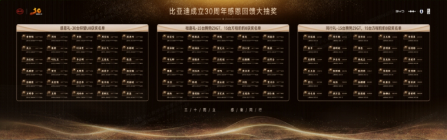 比亞迪如今的成績,離不開社會各界的關注與支持。王傳福以4個“30”回饋社會、車主和員工,真誠感謝一路同行的伙伴。