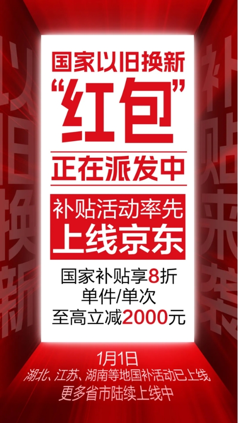 2025年1月1日,消費(fèi)品以舊換新國(guó)家補(bǔ)貼拉開帷幕,京東將繼續(xù)承接國(guó)家補(bǔ)貼發(fā)放工作,湖北、湖南、江蘇會(huì)場(chǎng)已于1月1日率先上線,各省市活動(dòng)會(huì)場(chǎng)陸續(xù)上線中。錯(cuò)過2024年“國(guó)補(bǔ)”的消費(fèi)者,可在新的一年里來京東APP搜索“3C補(bǔ)貼”進(jìn)入活動(dòng)會(huì)場(chǎng)領(lǐng)取資格,購(gòu)買包括電腦在內(nèi)的單件/單次商品,享至高補(bǔ)貼2000元。