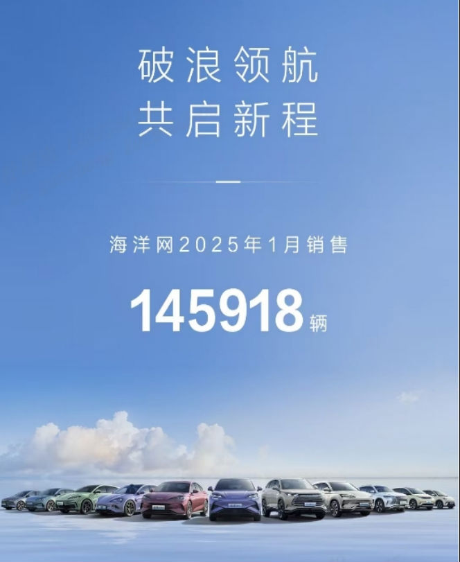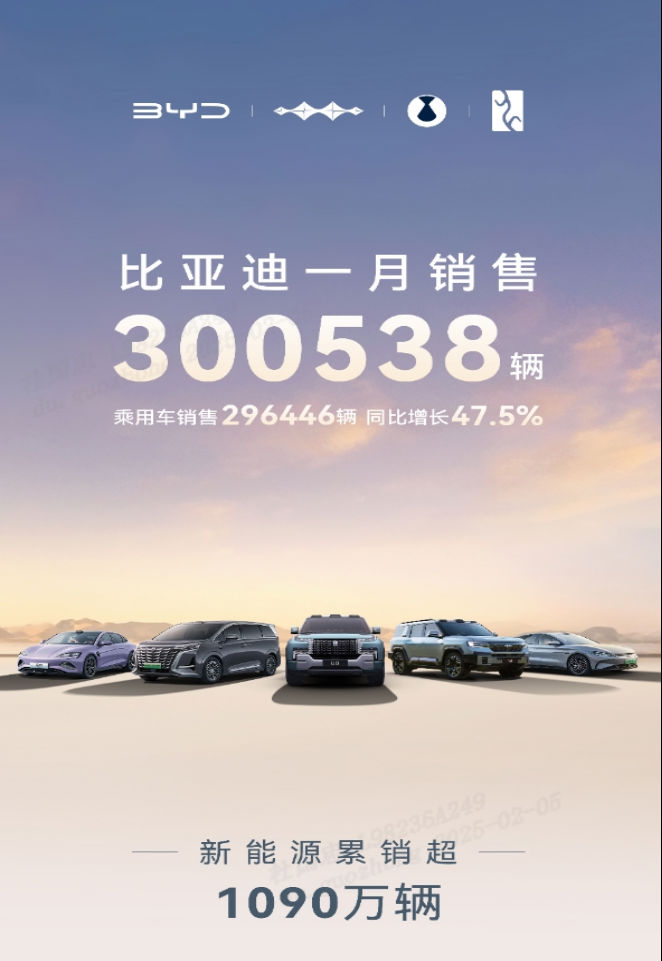 比亞迪1月銷(xiāo)售30萬(wàn)臺(tái),穩(wěn)坐新能源銷(xiāo)冠王座
