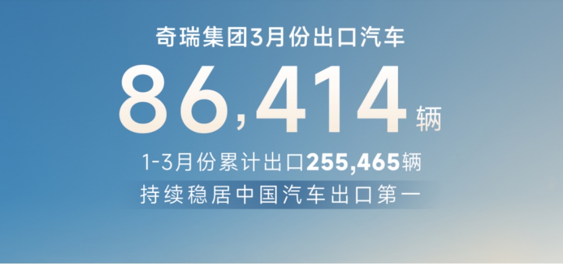 穩居中國汽車出口第一!奇瑞集團3月出口8.6萬輛,一季度突破25.5萬輛