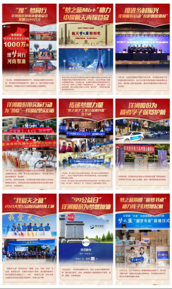 企業(yè)的成功離不開社會(huì)的支持,一直以來,回饋社會(huì)、貢獻(xiàn)價(jià)值都是洋河夢想文化的重要組成部分。