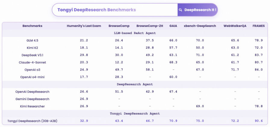 阿里開源通義DeepResearch,登頂開源Agent模型榜首