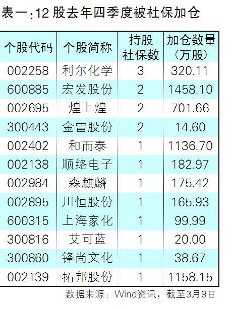 四季度社保加倉12只股
