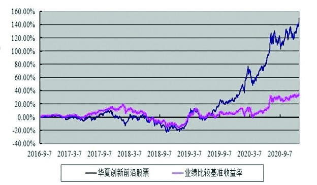 Wind數據顯示,華夏創新前沿成立于2016年9月7日,截至2020年12月31日,華夏創新前沿基金 2020年內漲幅達86.27%,自成立以來,凈值增長率達到149.60%,同期業績收益比較基準是36.65%,超額收益達112.95%。