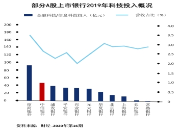 出國金融、青少年、女性、老年不同的細分客群,會有不同的“金融+非金融”服務方式……中信銀行一直有感知不同人群溫度的傳統,但是要上規模積累出核心優勢,離不開科技。今年,中信銀行確定了“以數字化轉型為主線,推動零售經營管理體系迭代升級”的發展策略。2020年中信銀行科技投入69.26億元,位居股份制銀行第二,依舊在排名上緊跟招商銀行。