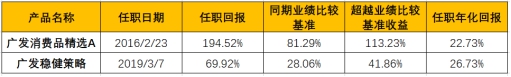 表:廣發消費品精選自李琛任職以來(去除建倉期)超額收益率