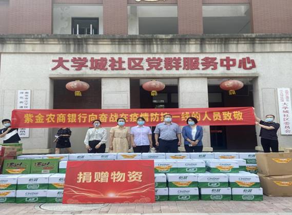 踐行社會責任,助力疫情防控一線。為積極貫徹落實南京市委關于深入開展黨員干部“兩在兩同”行動要求,助力疫情防控,總行黨委走訪慰問市、區相關單位,持續畫好黨建共建“同心圓”,向疫情防控一線人員捐贈抗疫物資,積極配合地方政府,維護金融穩定,保障人民群眾生命安全。各分支行基層黨組織積極響應南京市委《致全市共產黨員的倡議書》的號召,到各轄區周邊街道社區、到集中采樣點去,協助做好防疫工作,慰問堅守和奮戰在疫情防控一線的工作人員,為他們送去酷暑烈日下的一絲清涼。該行總行團委主動與團市委聯絡,響應團市委希望各級單位能夠幫助對接就近團區委和街道的號召,立即組織“紫微星”青年志愿者團隊,前往轄內全民核酸檢測點幫助做好人員引導、信息登記等工作,熱心支援防疫一線,展現紫金青年擔當。靠近檢測點附近的葛塘支行,利用網點優勢為排隊檢測市民提供免費飲用水和避暑區域,還為連夜排隊檢測的市民貼心準備了防蚊液,為共同防疫貢獻一點微薄的力量。東郊小鎮支行配合防疫要求在營業大廳設立臨時檢測點,嚴格做好環境消殺、檢測動線、發放礦泉水等配套工作,與社區網格員一同為核酸檢測工作順利進行保駕護航。