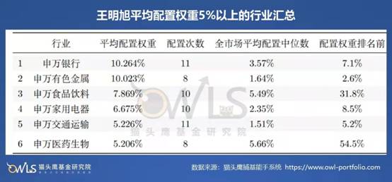我們觀察到,在指數中權重較高的銀行、食品飲料、家電等板塊,盡管不是隨時都有較大行情,但在王明旭的持倉中,仍進行了相對均衡的配置。而且,他是除指數基金外,少數常年在組合中配置較多銀行的基金經理之一。
