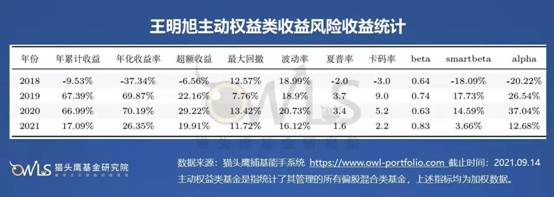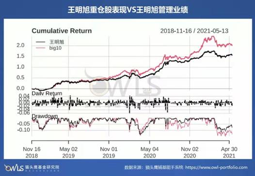 均衡配置的管理思路,使得王明旭的市場適應性得到了加強,這一點在貓頭鷹的數據中也能得到驗證。不論東南西北風,他的組合在進攻與防守之間能得到比較好的平衡。