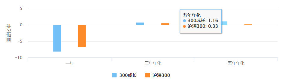 5、300成長的長期夏普比率更出色。下圖是300成長、300價值、滬深300的夏普比率數(shù)據(jù),夏普比率五年年化由高到低的分別是300成長、滬深300、300價值,分別為1.16、0.33、-0.67。夏普比率反映了單位風險基金凈值增長率超過無風險收益率的程度。