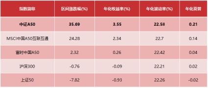 中證A50指數(shù)與主要指數(shù)風(fēng)險(xiǎn)收益特征對(duì)比