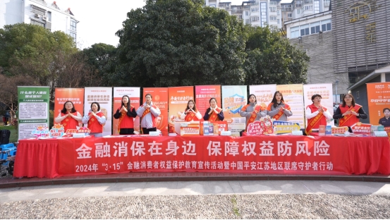 今年“3·15”期間,平安集團江蘇地區(qū)各專業(yè)公司聚焦金融為民、金融惠民、金融便民,加大金融消費者八項基本權(quán)利普及力度,增強消費者維權(quán)意識;強化“三適當”原則,引導(dǎo)消費者科學(xué)理性投資;堅持發(fā)展新時代“楓橋經(jīng)驗”,宣傳金融糾紛多元化解機制,提升消費者依法維權(quán)能力;同時,將誠信經(jīng)營融入經(jīng)營各環(huán)節(jié),并推動誠信教育“五進入”,以文化助推金融業(yè)高質(zhì)量發(fā)展。