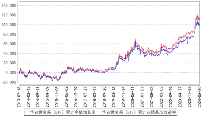 自成立以來,華安黃金ETF實現總回報100.34%,同期業績比較基準收益率112.15%,為持有人較好把握了黃金的長期行情。(數據來源:基金定期報告,截至2024年6月30日)