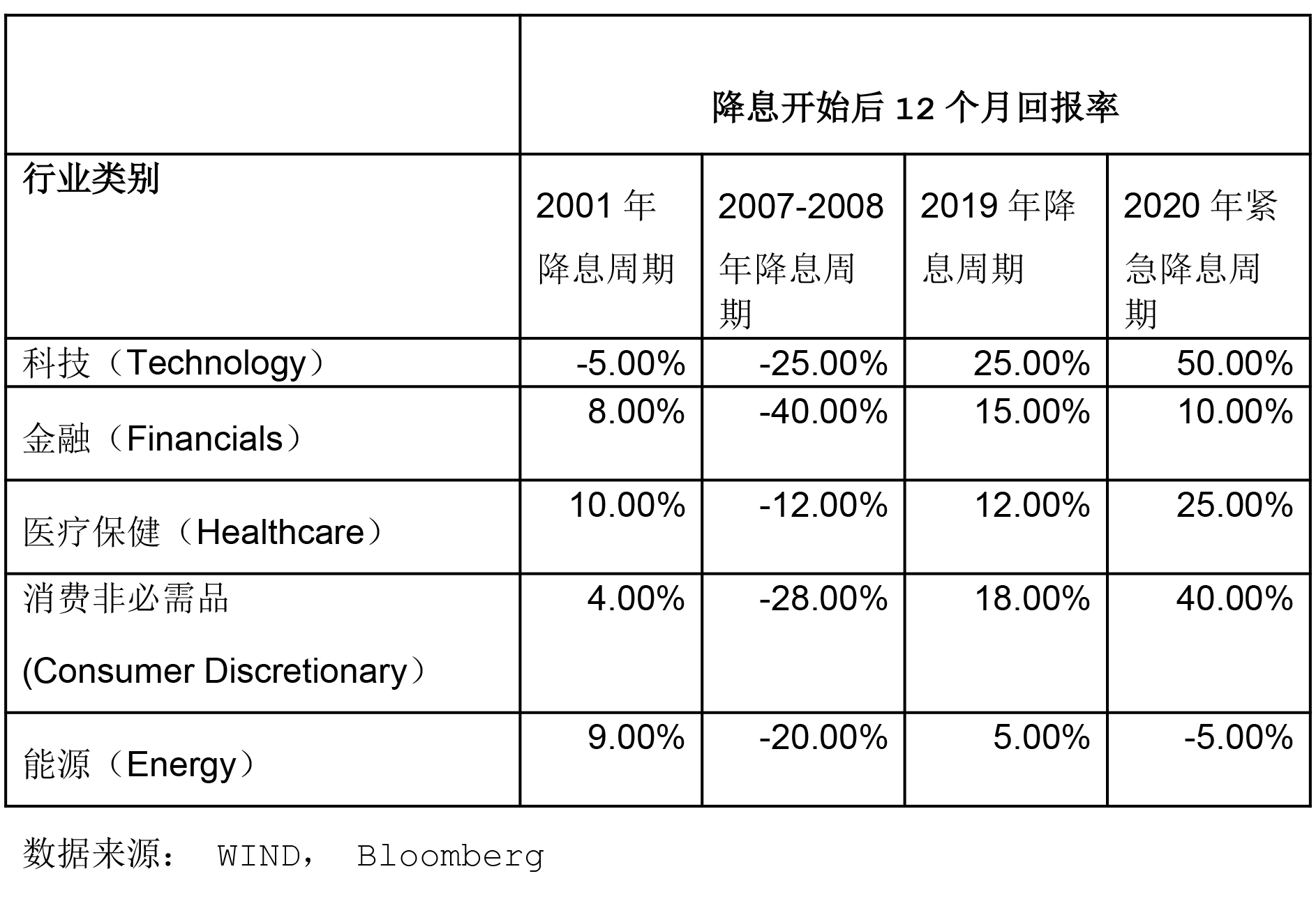 l 醫(yī)療保健和消費(fèi)非必需品行業(yè)通常在降息后有穩(wěn)健的表現(xiàn),受益于消費(fèi)者支出和投資增加;